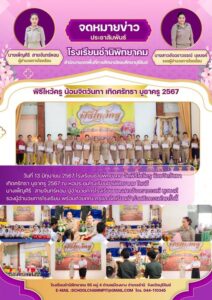 โรงเรียนชำนิพิทยาคม จัดพิธีไหว้ครู น้อมจิตวันทา เทิดศรัทธา บูชาครู 2567 ณ หอประชุมโรงเรียนชำนิพิทยาคม โดยมี นางเพ็ญศิริ สายจันทร์หอม ผู้อำนวยการโรงเรียน นางสาวอัจฉราวรรณ์ บุษบงค์ รองผู้อำนวยการโรงเรียน พร้อมด้วยคณะครูและนักเรียนเข้าร่วมกิจกรรมในครั้งนี้